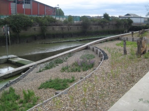 Constructed as part of the Phase 3 enabling works, the terraces were located at the confluence of the Thames & River Wandle, building upon the aspirations of the Environmental Agency in making the terrace one of their top 20 environmental schemes as an innovative exemplar of biodiverse urban design. The unique position allows sinuous intertidal terraces to create a rich ecological aquatic and terrestrial habitat.
